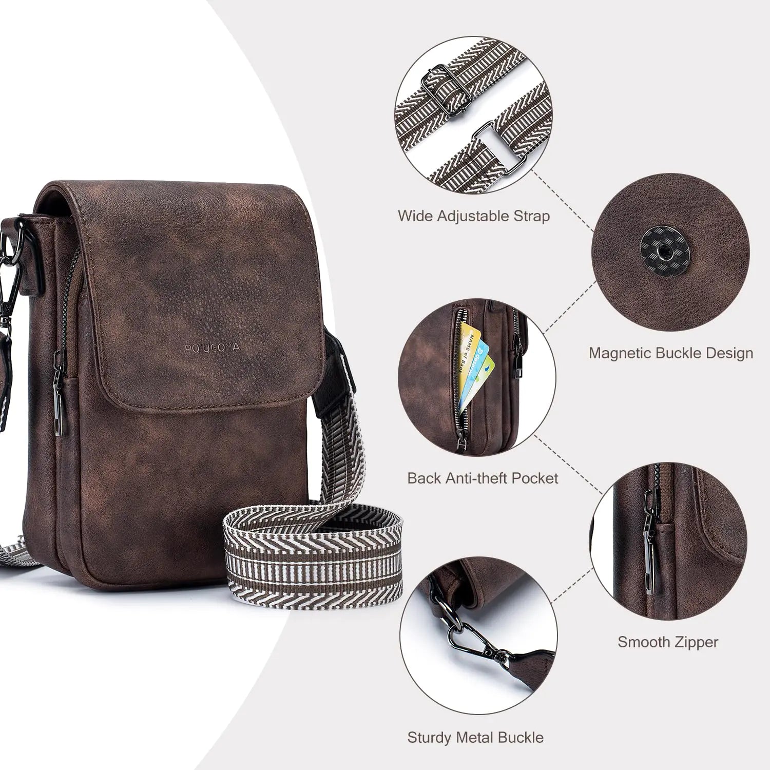 POIUGOYA Small Crossbody Bags for Women Trendy,Leather Triple Compartment Cell Phone Crossbody Wallet Purses with Card Slots